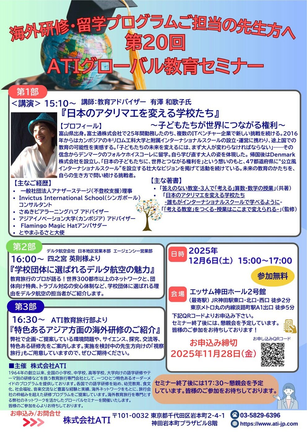 第20回 ATIグローバル教育セミナー開催のお知らせ